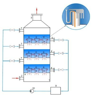 Методът дава възможност за утилизиране на отпадъчната топлина от горенето и последващото й използване за топлофикационни цели. Изходящите газове при осъществяване на процеса на изгаряне се третират в скрубер- колона с пълнеж, в която се осъществява тяхното пречистване.